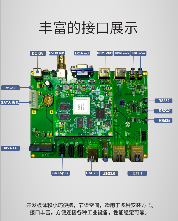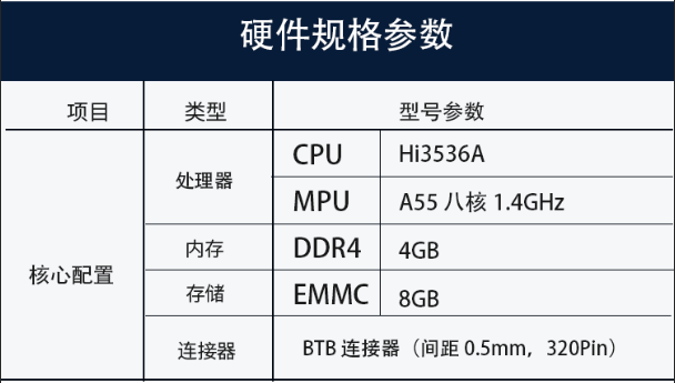 八核ARM Cortex-A55@ 1.4GHz;支持 NEON 加速,集成FPU 處理單元;接口豐富,配套資料齊全